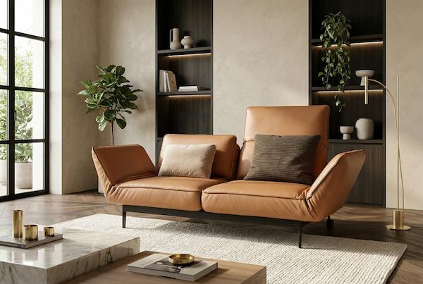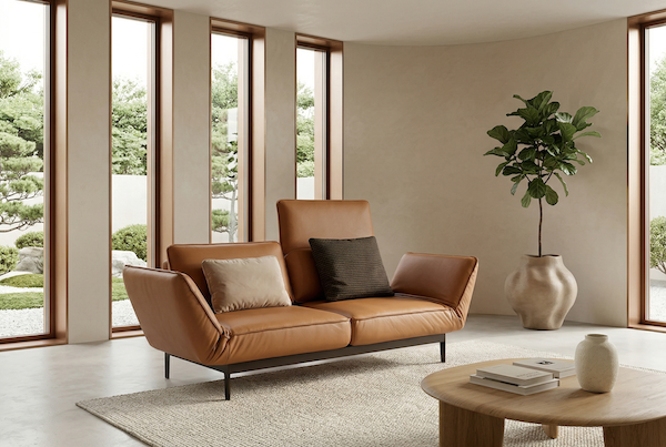 De Rolf Benz Mera is een ontwerp van Beck Design, met prachtige strakke lijnen die optimaal tot hun recht komen wanneer de arm- en rugleuningen zijn ingeklapt. Brengt u de armen en rug omhoog of in relaxstand, dan vloeien de lijnen prachtig over, zonder dat het designkarakter verloren gaat.